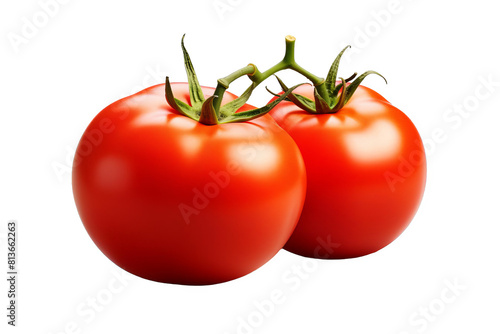 Two ripe red tomatoes on the vine isolated on a transparent background