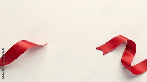 Two scarlet ribbons elegantly arranged on a pristine white background, offering a versatile design element for various applications.