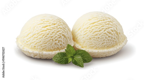 Two Scoops of Creamy Vanilla Ice Cream with Mint
