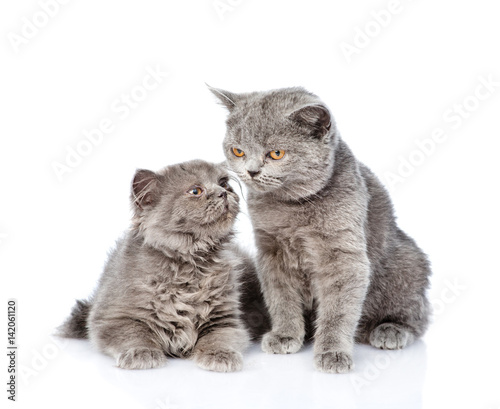 Two Scottish cats sniff each other. isolated on white background