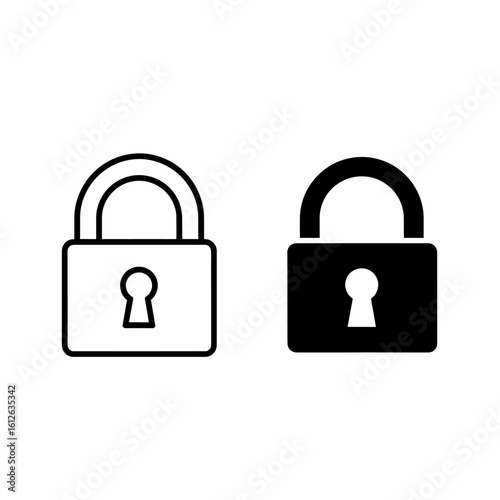 Two simple black and white padlock icons, one outlined, the other filled, on a white background.