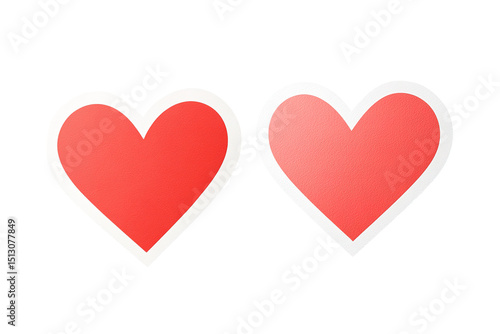 Two simple red hearts with white outlines isolated on transparent background.