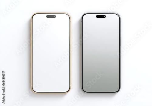 Two smartphones, one gold, one gray, displayed on a white background. Both feature a blank screen and a similar rectangular shape