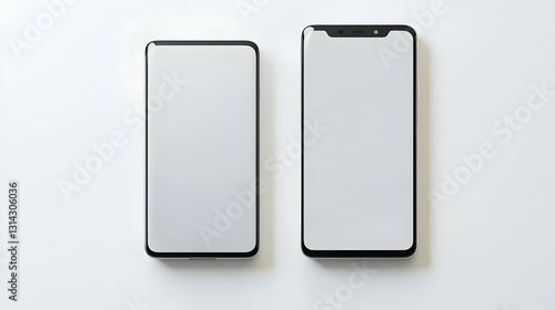Two Smartphones With Blank White Screens On A White Background With Different Sizes Showing Matte And Glossy Finishes