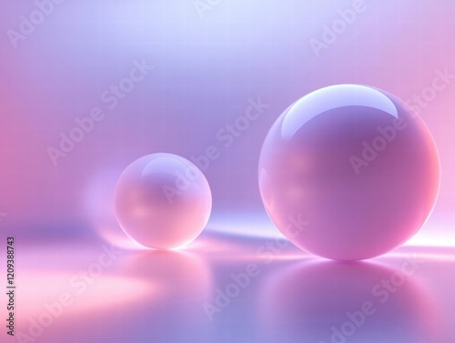Two Spheres, One Large, One Small, in a Purple and Pink Gradient Background