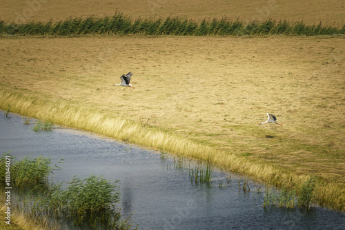 Two storks taking flight