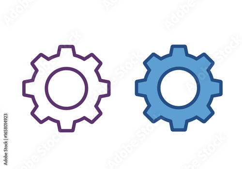 Two stylized gear icons, one purple outline and one blue filled, representing settings or mechanical processes.