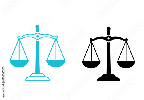 Two Stylized Illustrations of the Symbol of Justice Representing Balance and Fairness in Legal Systems and Judgement
