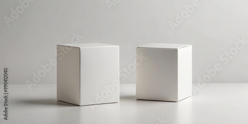 Two White Boxes on a White Surface, Minimalist Product Mockup, Empty Package, Clean Design, White Background, Product Display, Packaging Design