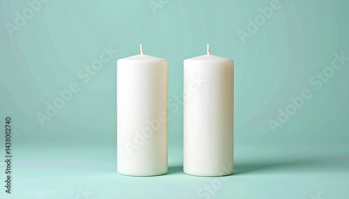 two white candles stand tall against a minimalist background. A perfect visual for tranquility, warmth, and illumination