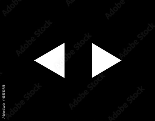 Two white triangles pointing left and right, separated by a thin vertical line, on a black background