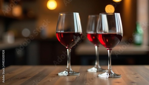 Two wine glasses, one full, one empty, on a wooden table , rustic, wine tasting, wood