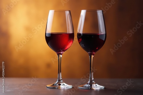 Two wine glasses, red and white wine side-by-side , elegant, red