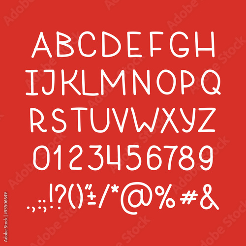 Type letters, numbers and punctuation marks Hand drawin alphabet