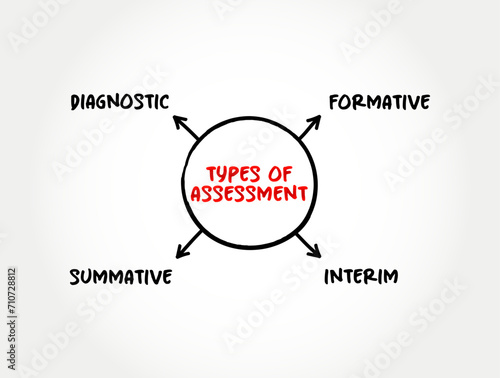 Types of Assessment (action of assessing someone or something) mind map concept background