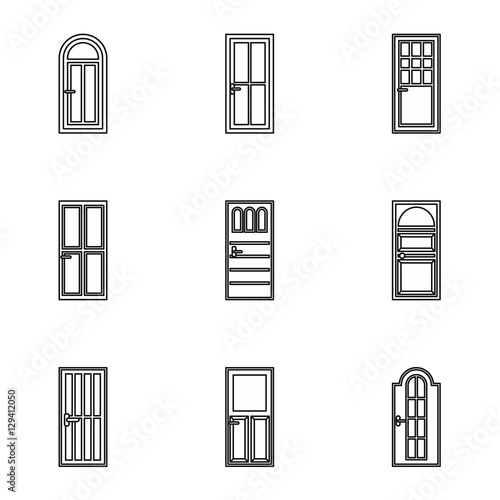 Types of doors icons set. Outline illustration of 9 types of doors vector icons for web
