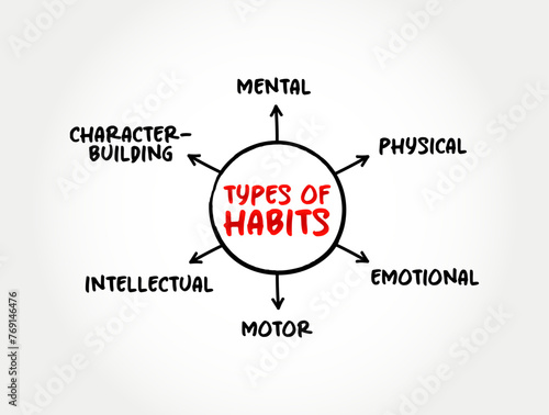 Types of Habits text mind map, concept background