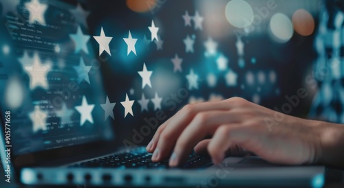 Typing on Laptop With Digital Stars Projected in a Low Light Setting