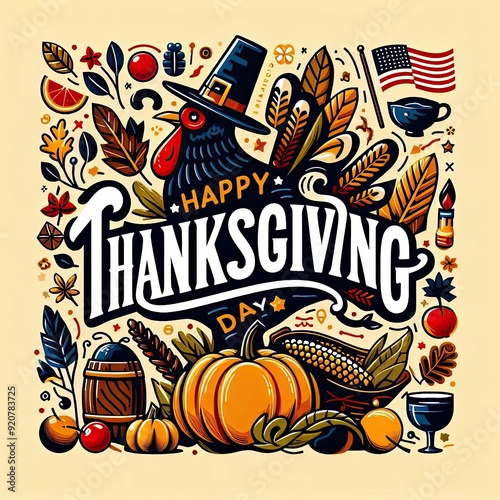 Typography letter Happy Thanksgiving Day template background. Vector illustration. AI generate