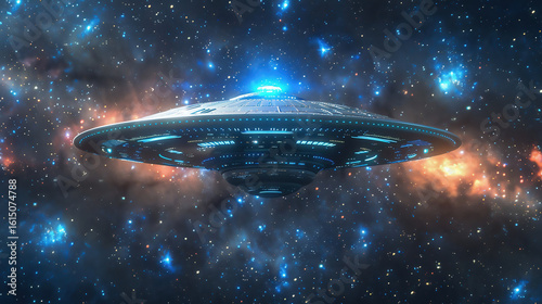 UFO in several images adjusted for perspective, for science fiction artwork or interstellar deep space travel.