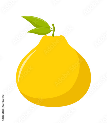 Ugli fruit with green leaves isolated on white background, flat design, fruit vector illustration
