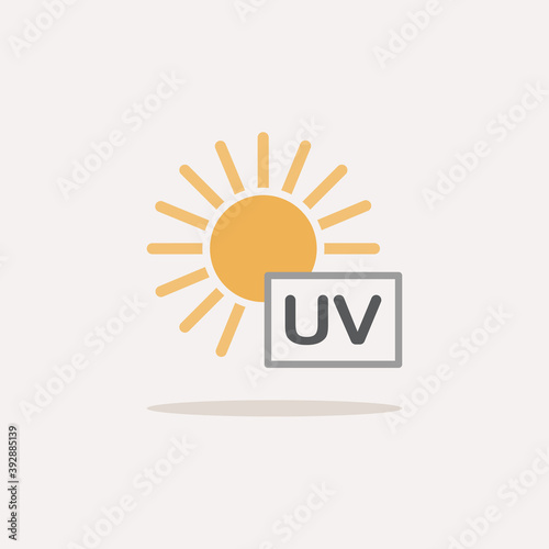 Ultra violet rays sun. Color icon with shadow. Weather vector illustration