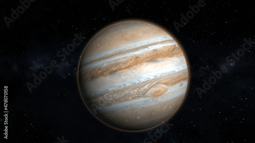 Ultra-realistic 3D Jupiter and stars. Jupiter from space. 3D render.