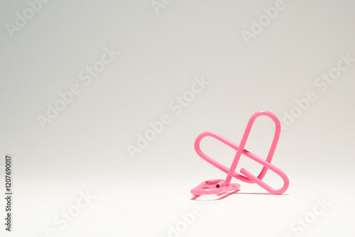 Un clip rosa con forma de corazon en un fondo blanco.
