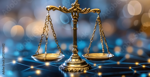 Unbiased artificial intelligence, Scales of Justice in Digital World Concept.