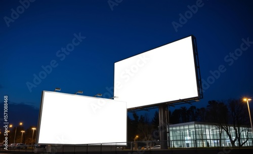 Under a cloak of midnight a stark white billboard its surface devoid of any image stood sentinel near the entrance of a towering structure its emptiness punctuated by the rhythmic flicker of illuminat