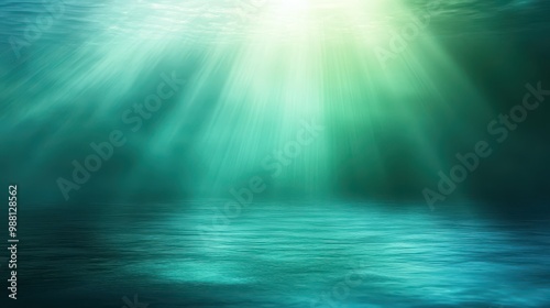 Underwater Light Rays Abstract Background - Teal Green Ocean Sea with Sunbeams