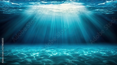 Underwater Ocean Scene Sunbeams Illuminate Sandy Seabed Aquatic Background