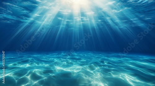 Underwater scene of the ocean. the water is a deep blue color and the surface is smooth and clear.
