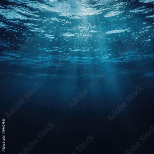 Underwater Scene Showing Sunbeams and Ocean Depths
