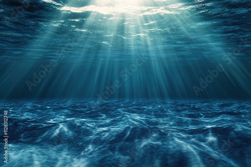 Underwater scene with rays of light illuminating the ocean.