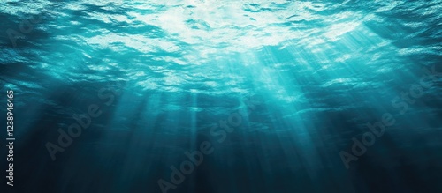 Underwater scene with sun rays illuminating blue water surface natural abstract background Copy Space