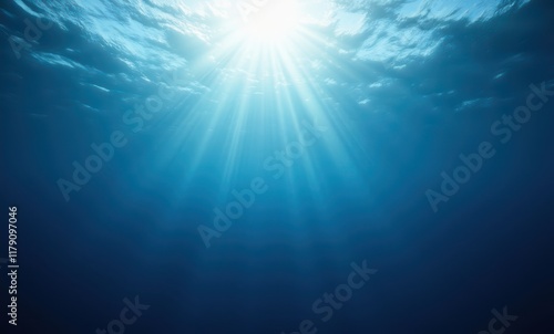 Underwater sunlight beams illuminating ocean depths