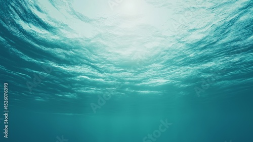 Underwater view of a vibrant tropical ocean with sunlight filtering through waves