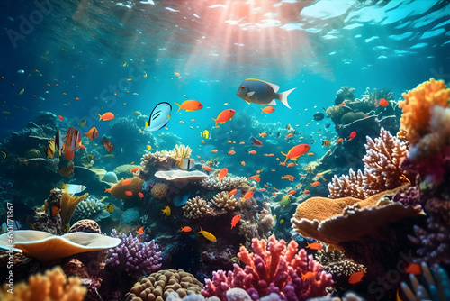 Underwater Wonders: Colorful tropical fish swimming in a coral reef. Generative ai.