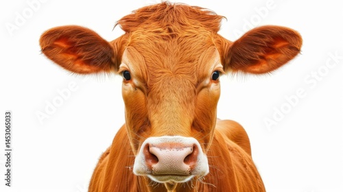 Unique cow head with distinct brown spots, perfect for showcasing farm life and animal beauty, set on a clean white background.