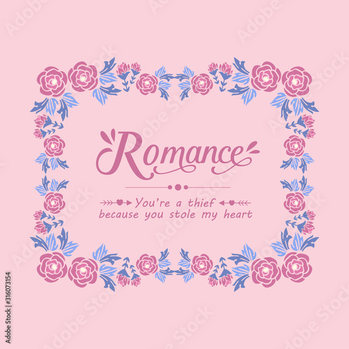 Unique pattern of leaf and floral frame, for elegant romance decoration of cards. Vector