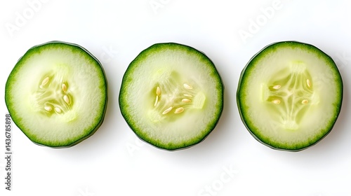 Unique Patterns of Fresh Cucumber Slices on White Background