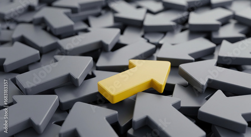 Unique yellow arrow leads the way, signifying teamwork, a shared goal, and a winning concept for the team