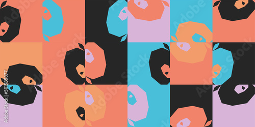 Universal Seamless Geometric Pattern With Fruit Elements, Vegetable Shapes.