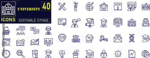 University icon collection set. Containing higher education, learning environment, research institution, student community, campus life .