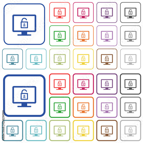 Unlock screen outlined flat color icons