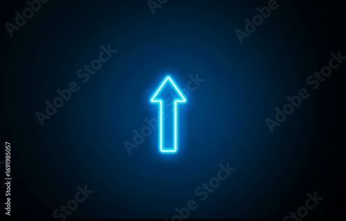 Up directional blue color Neon arrow on black background. Neon road symbol. Neon glowing arrow pointer. Glowing business indicator icon. Neon and glowing up arrow icon.