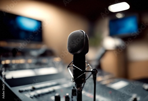 up place room radio host station broadcast recording close studio microphone working mic length sound music audio broadcasting