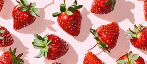 Updated version: Contemporary retro design featuring vibrant red strawberries on a soft pink backdrop.