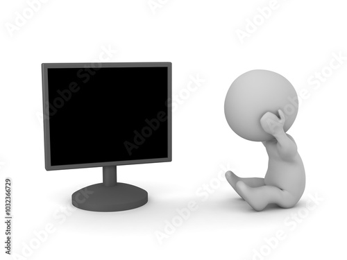 Upset 3D Character with a Computer Monitor
